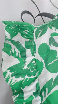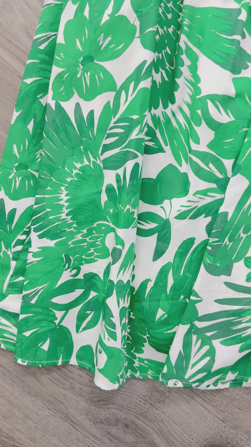 Step into the lush beauty of nature with The Eden Dress, a stunning piece that brings tropical elegance to your everyday wardrobe. This enchanting dress features a vibrant green and white rainforest and parrot print that captures the essence of exotic landscapes, making it perfect for those who love bold, nature-inspired style. Designed with thoughtful details that prioritize both comfort and flattery, this dress showcases charming ruffle sleeves that add a playful, feminine touch.